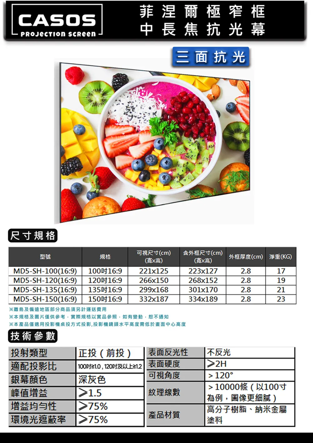 菲涅爾極窄框中長焦抗光幕