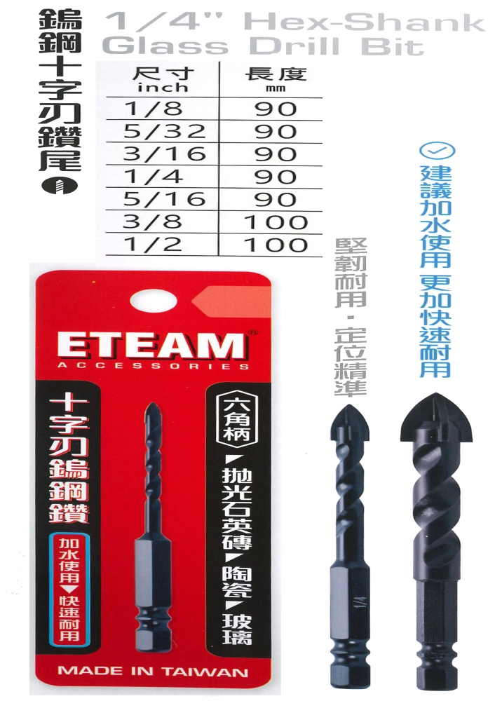 • 一等 ETEAM 鎢鋼十字刃鑚尾