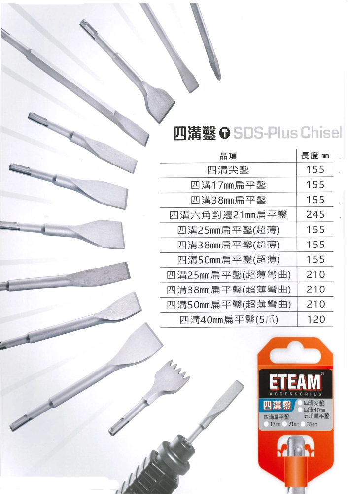 ETEAM 四溝鑿系列 採用高強度合金鋼製造,
