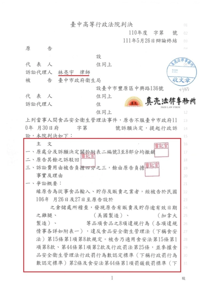 商品食安衛生管理法有關保存期限之規定有爭議,業者竟遭主管機關裁罰超過千萬臺幣, 委由真亮法律事務所辦理, 獲【原處分撤銷】之判決!