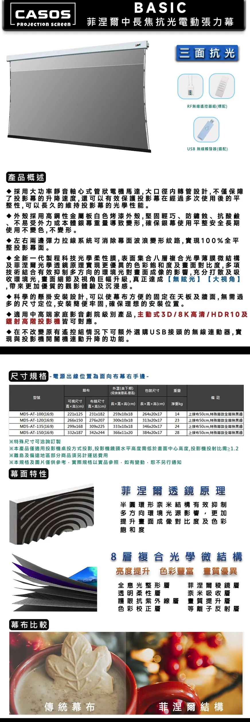 商品卡色式 CASOS MD3-80(16:10) 80吋 第3代漸變式黑柵抗光幕 超短焦窄邊框抗光幕