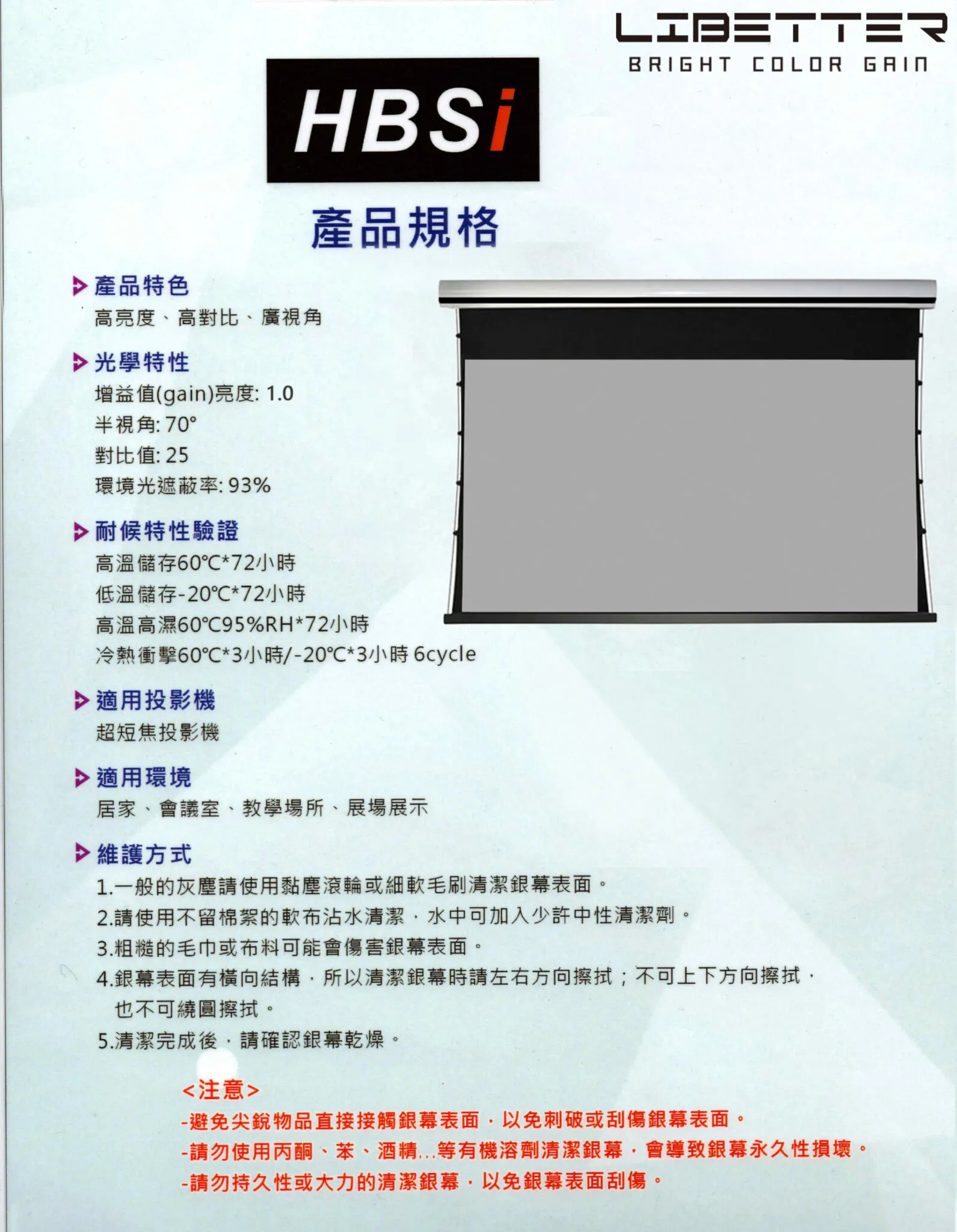 Libetter Bright color Gain系列 120吋 16:9 黑柵電動拉線張力抗光幕