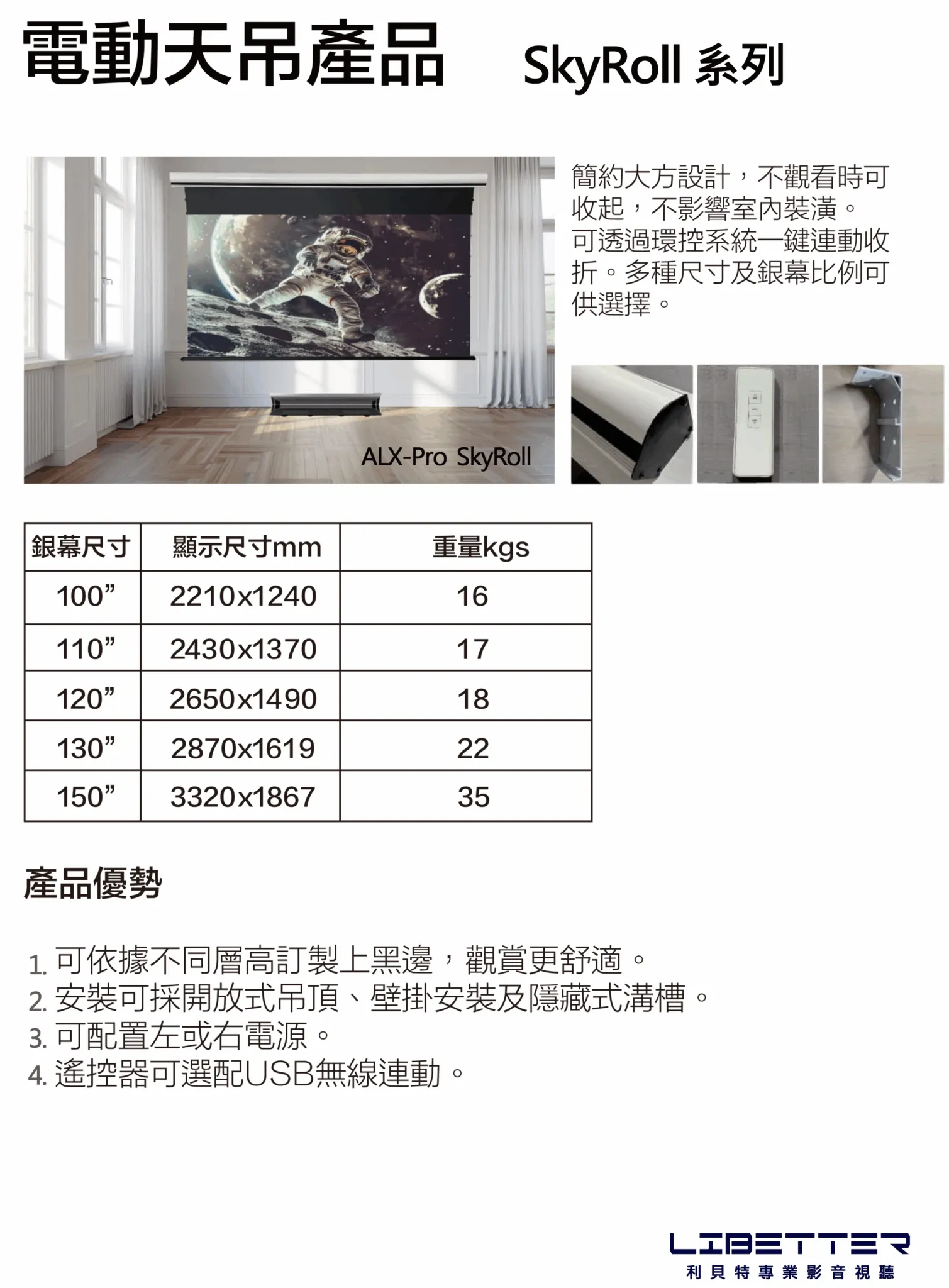 台製 Libetter 130吋 16:9 中長焦晶柵電動拉線抗光幕