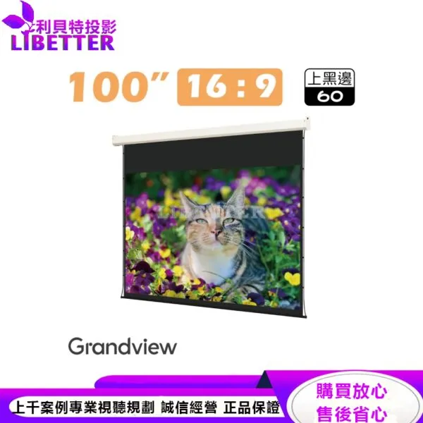 商品LIBETTER VISION 台製頂級電動張力拉線幕 定製系列 4K/8k 雅白/ 全彩 /透聲/ 100吋 雪晶幕面 可定製