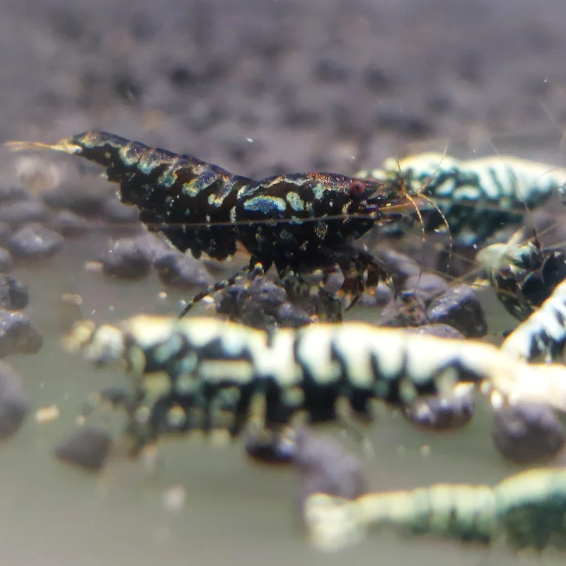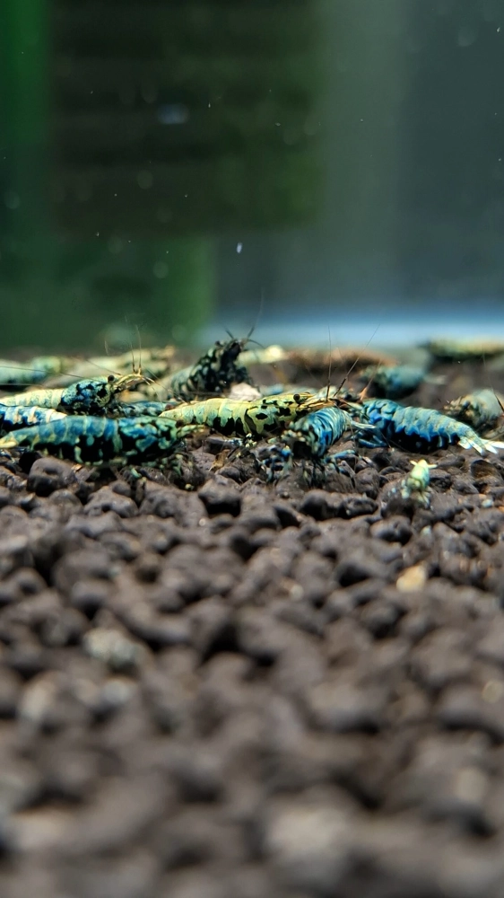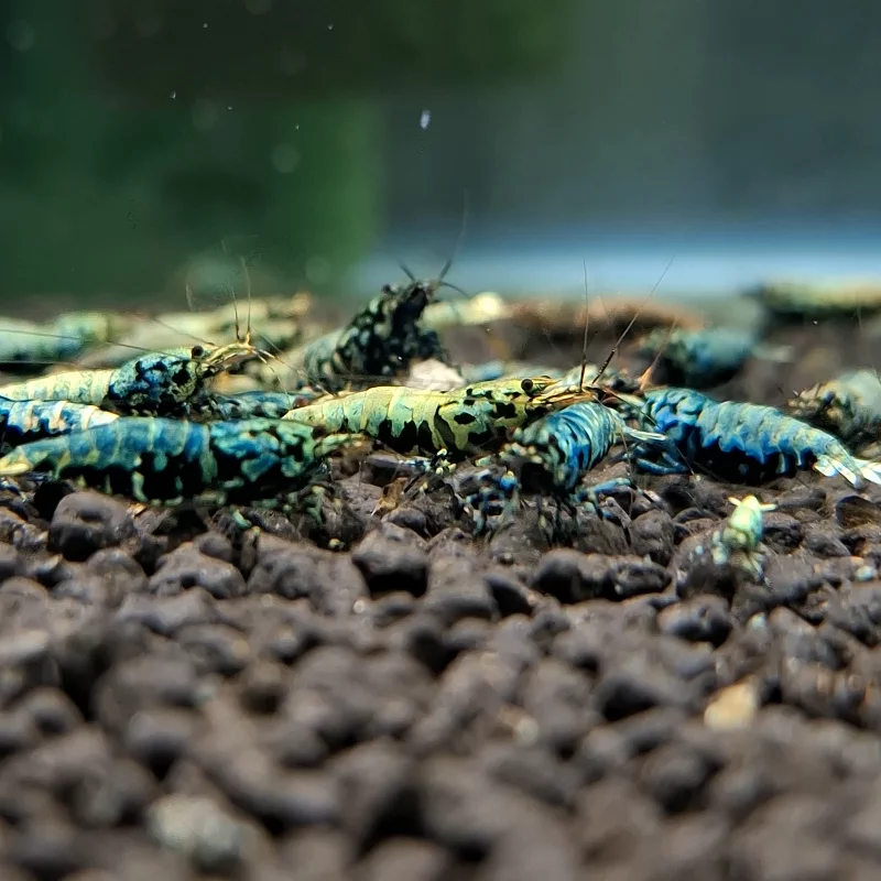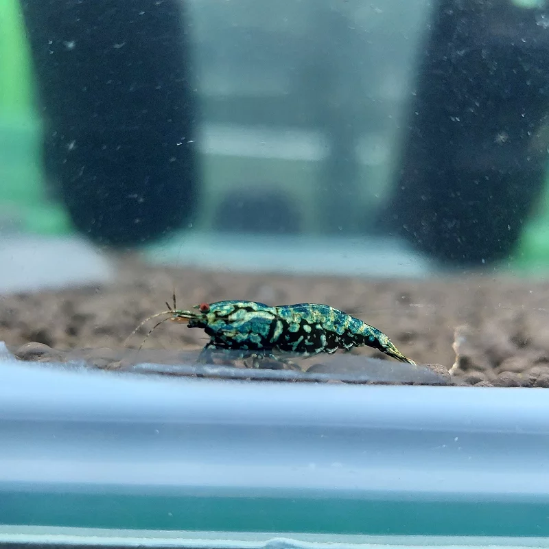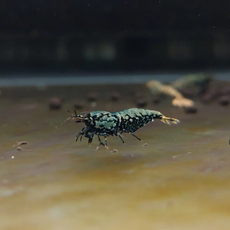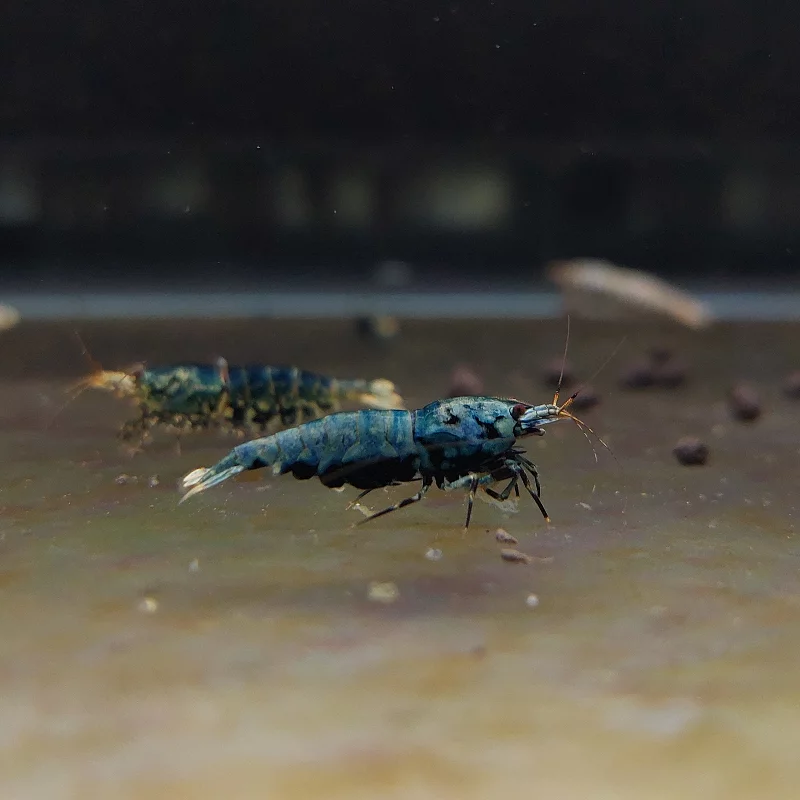 金屬藍蟒為高人氣觀賞蝦之一,擁有閃耀的金屬藍色澤,體型小巧適合水族缸飼養。藍色與雪花特徵約在1.2公分以上開始明顯。