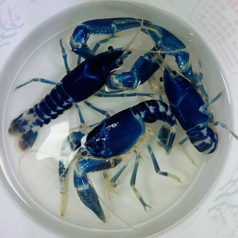 以青白混色花紋著稱的美國螯蝦,適合公母選購,對蝦搭配出貨。