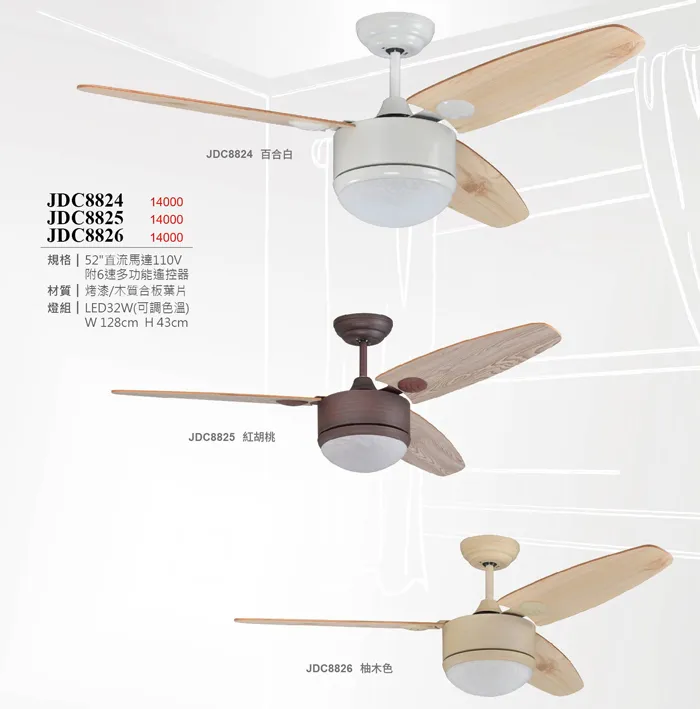 品名: DC 直流變頻 52吋吊扇 (百合白824 /紅胡桃825 /柚木色826)