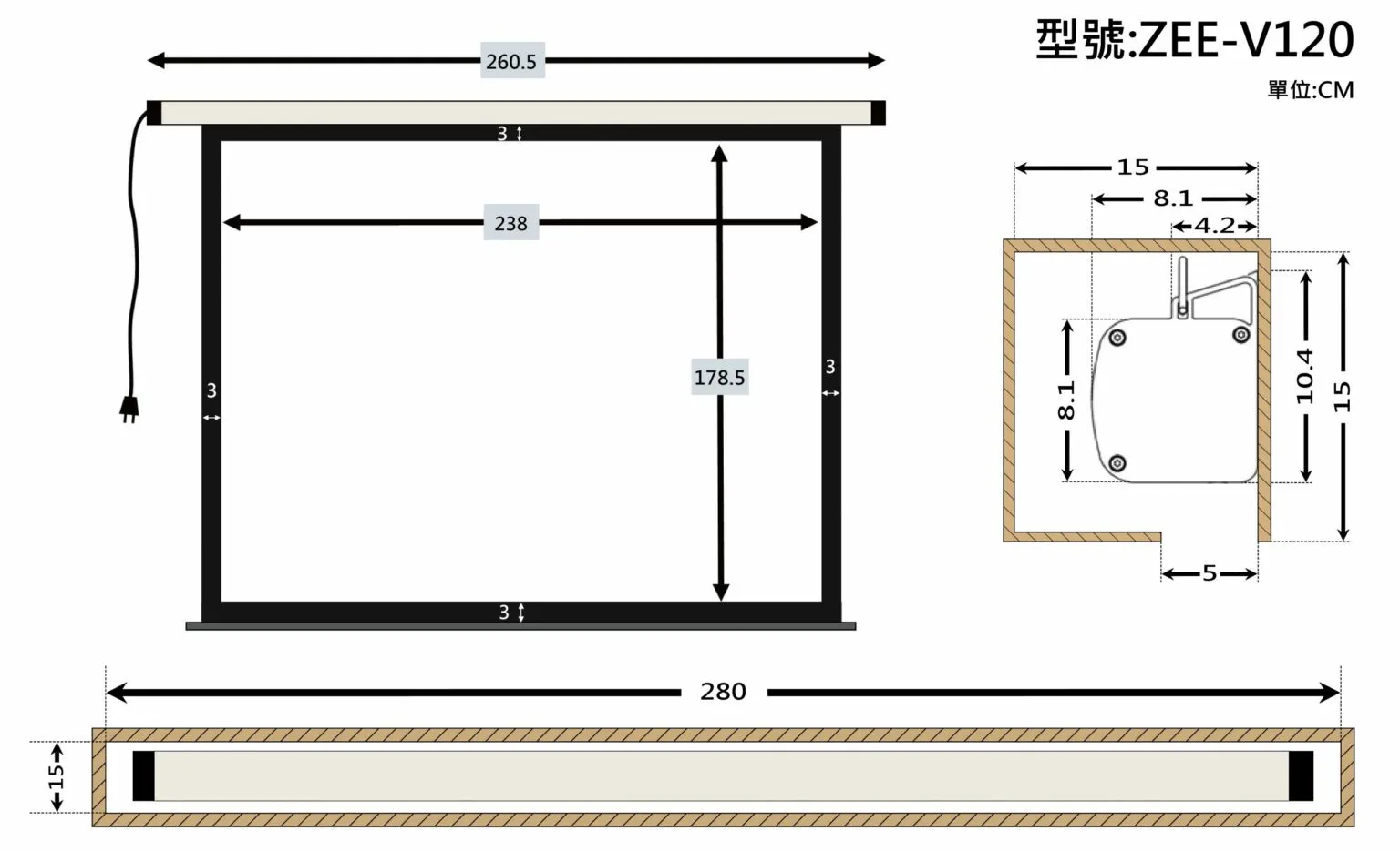 ZERO ZEE-V120 經濟型電動布幕 4:3 120吋