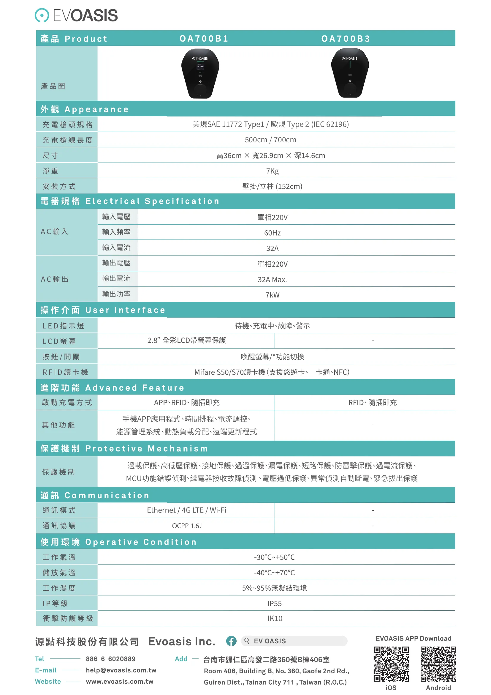 • EVOASIS 城市綠洲 電動汽車充電樁 OA700B3