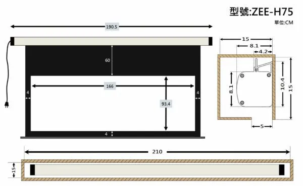 商品ZERO ZBE-S75 豪華型電動布幕 1:1 75吋 1.0高增益 台製品牌 鋁合金靜音馬達電動幕