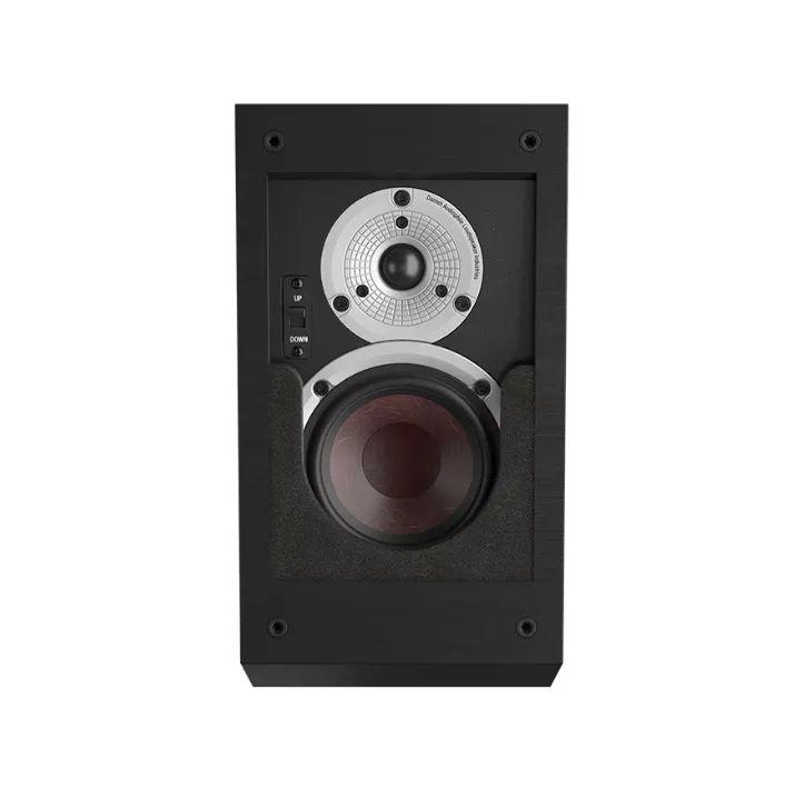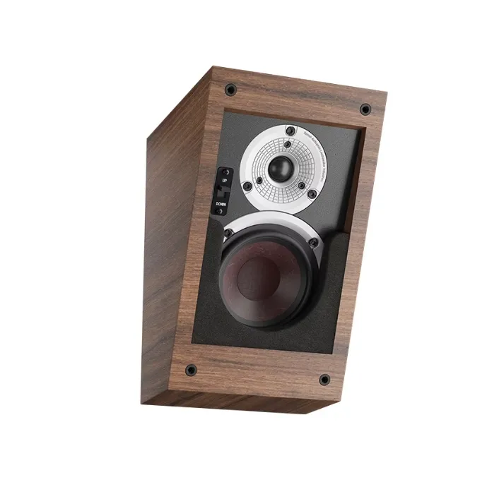 獨特的角度設計與雙聲模式相結合,使得這款揚聲器可以用於多種不同的場景。選擇前擋板開關上的“UP”按鈕,將聲波直接向下傾斜,或者選擇“DOWN”,幾乎筆直向下發出聲音,進行近距離聽音。