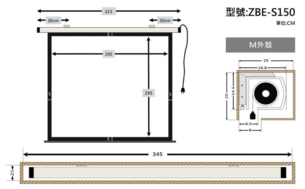 商品ZERO ZBE-W165 豪華型電動布幕 16:10 165吋 1.0高增益 台製品牌 鋁合金高扭力馬達電動幕