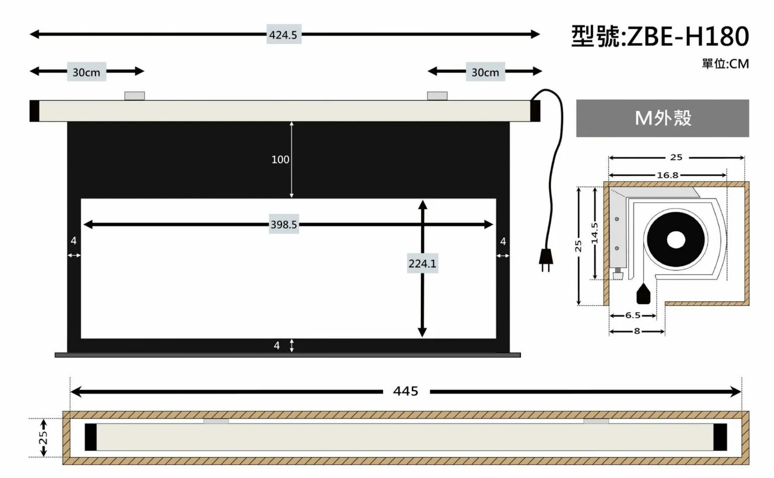 商品ZERO ZBE-H90 豪華型電動布幕 16:9 90吋 1.0高增益 台製品牌 鋁合金靜音馬達電動幕