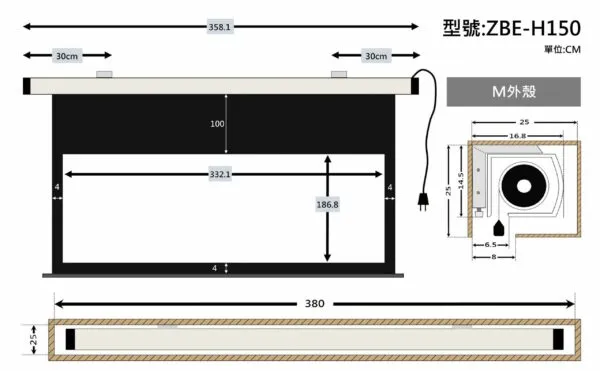 ZERO ZBE-H150 豪華型電動布幕 16:9 150吋