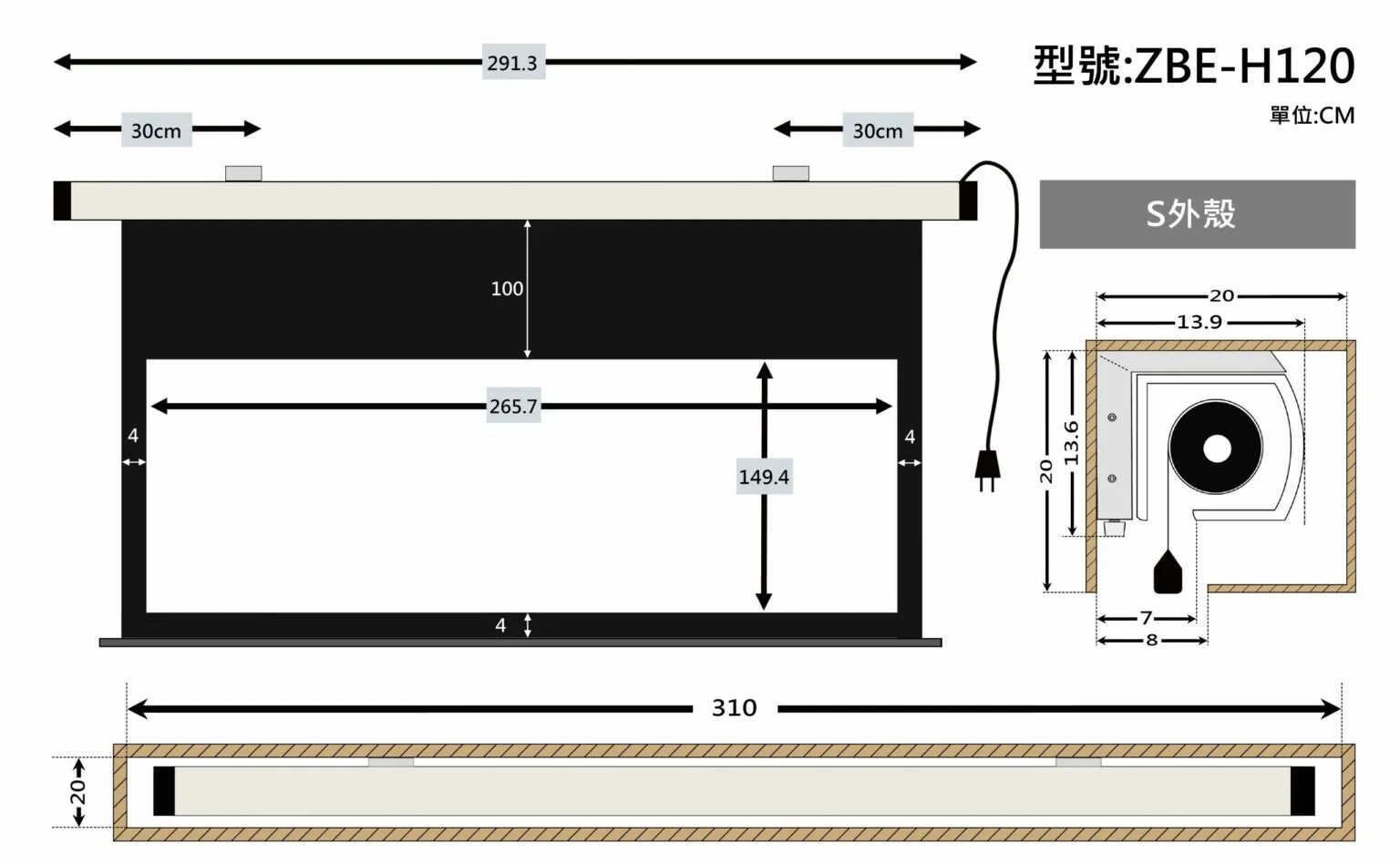 ZERO ZBE-H120 豪華型電動布幕 16:9 120吋