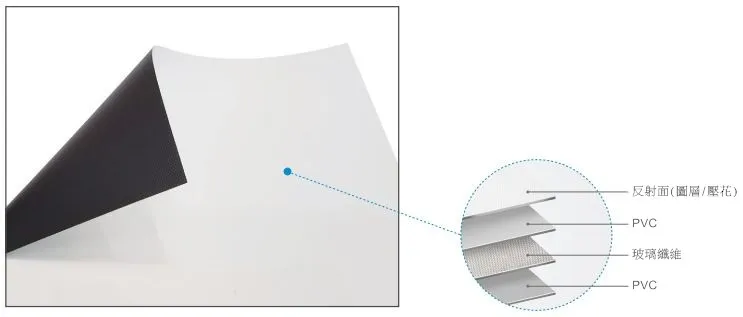 四層複合結構,中層玻璃纖維幕基,拉伸率≤1%,幕面平整持久。