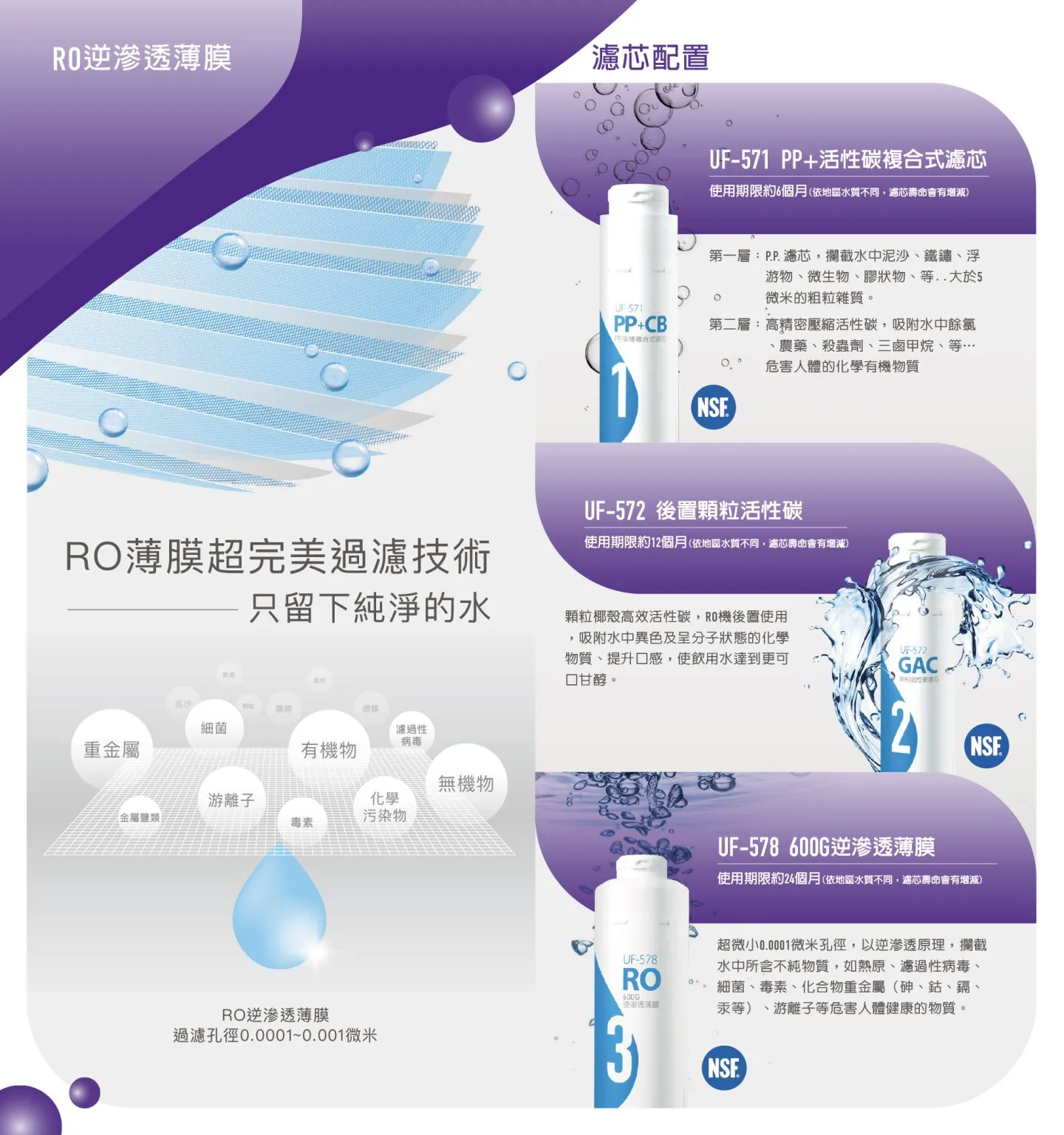 UF-571P.P.+活性碳複合式濾芯約6個月