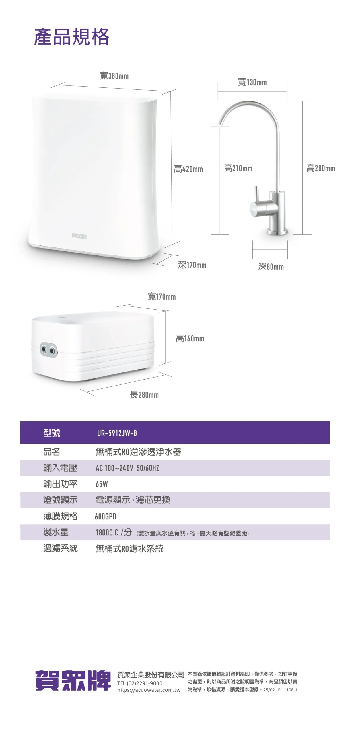 每分鐘,即享最大1.8公升純淨好水。