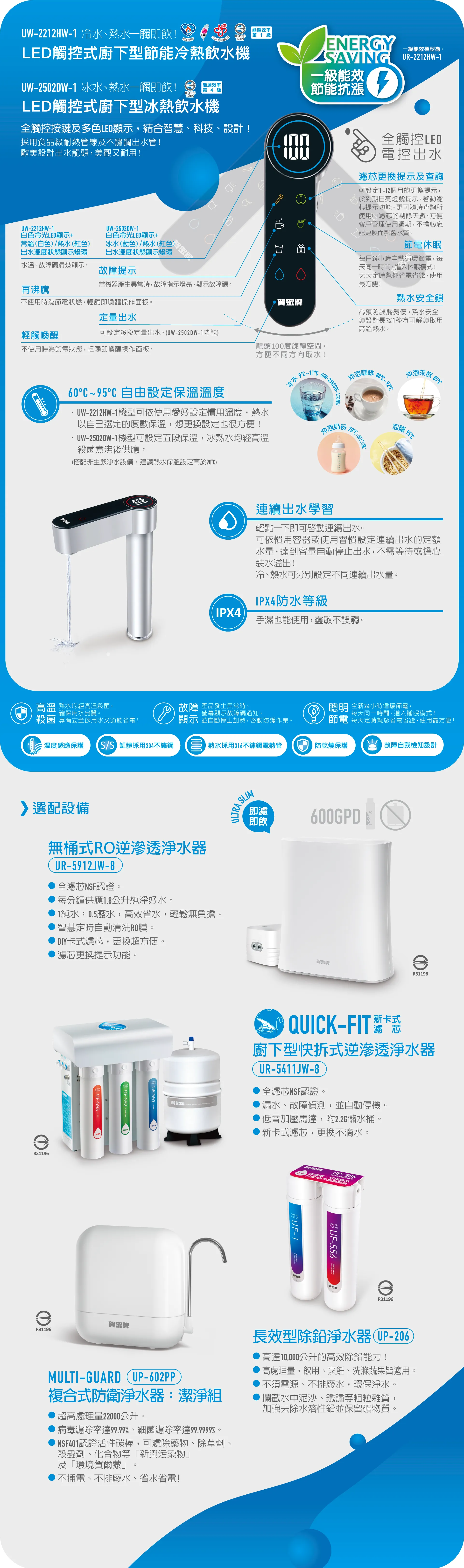 品名LED觸控式廚下型節能冷熱飲水機