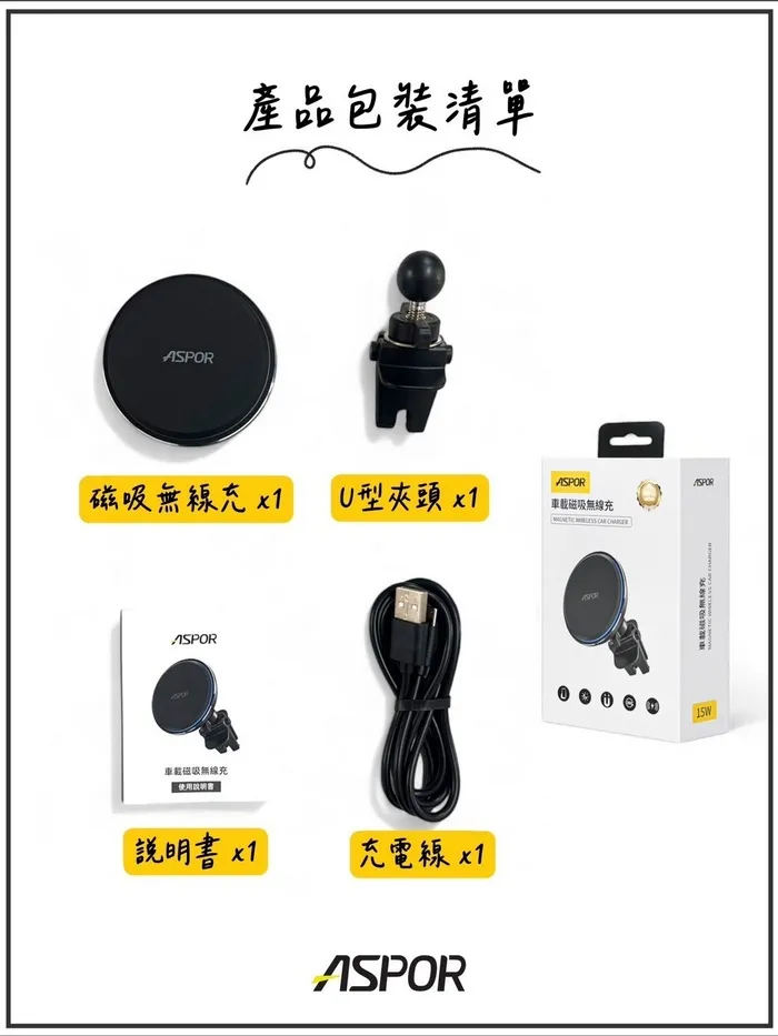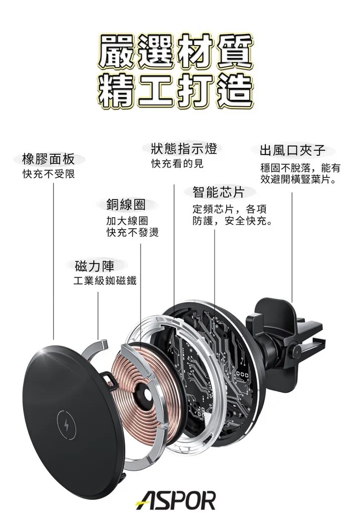 ASPOR車載磁吸無線充