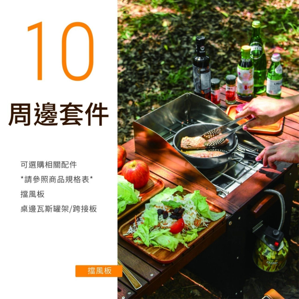 🔥 可搭配周邊配件(瓦斯罐架、跨接板、擋風板、蓋板、桌板)
