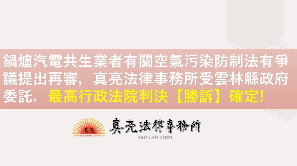 商品鍋爐汽電共生業者有關空氣污染防制法規定有爭議上訴二審,真亮法律事務所受雲林縣政府委託,最高行政法院判決【勝訴】確定。