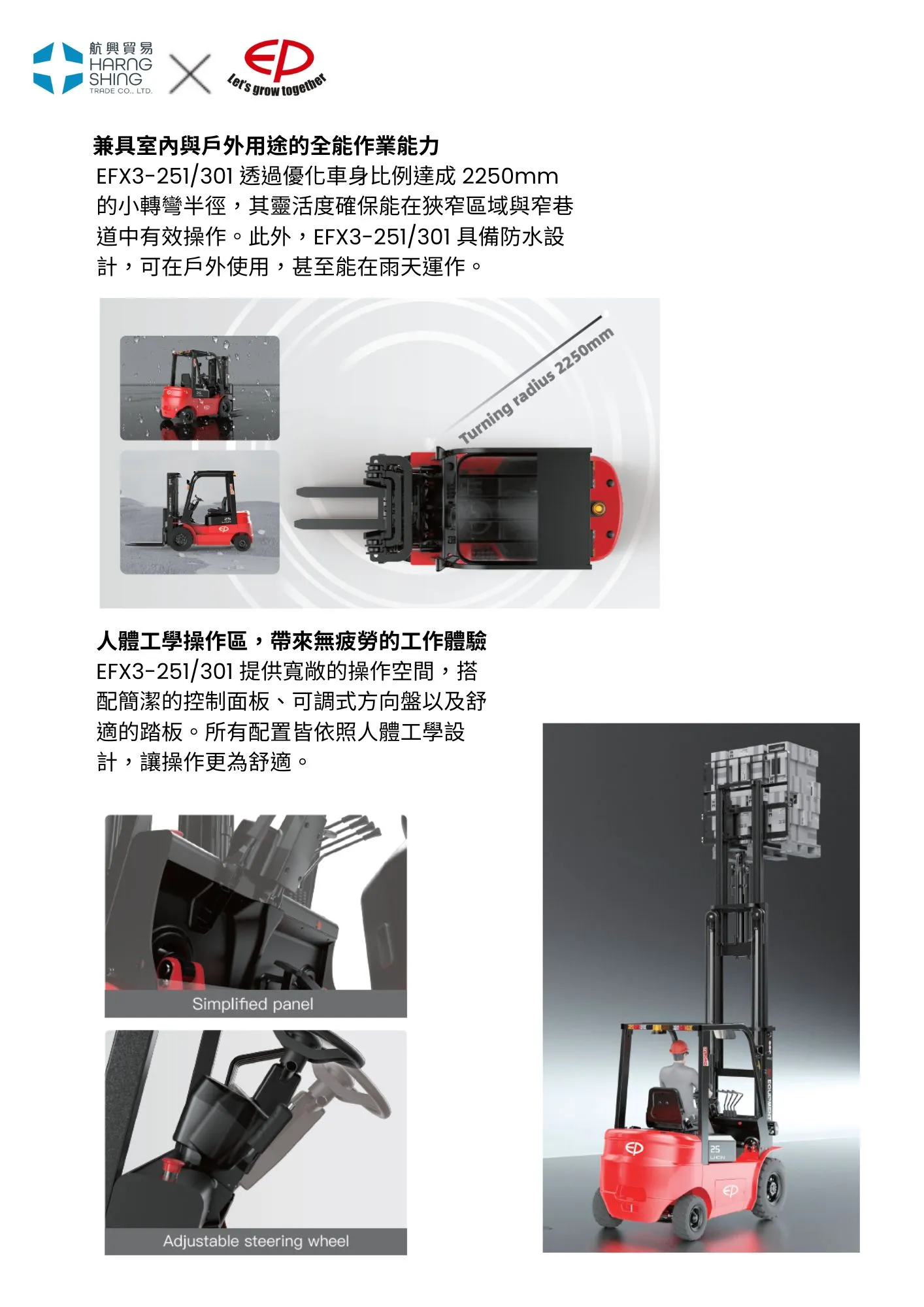 中力是一家以產品創新為核心的全球化科技企業,專注於電動倉儲叉車、智慧搬運機器人及叉車設備的研發、製造與服務,為製造業、物流業及流通產業提供綠色化、智慧化、數位化的物料搬運解決方案,持續推動工業物流邁向 4.0 發展。