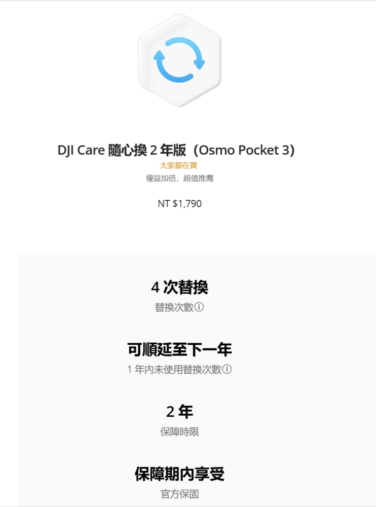 商品DJI Care 隨心換 1 年版(Osmo Pocket 3)