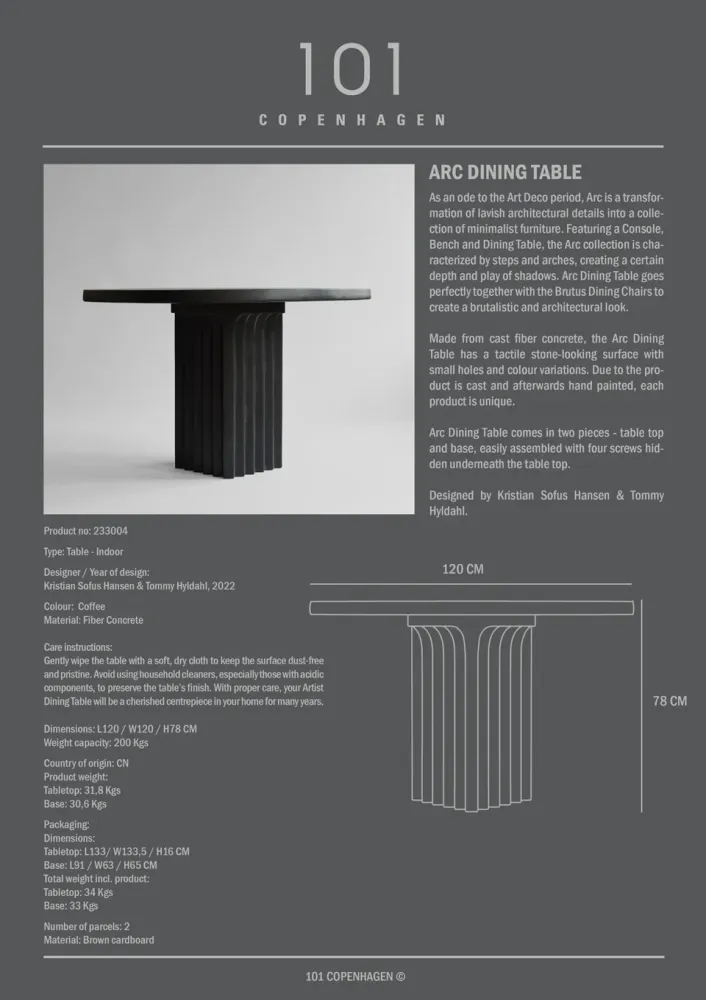 由鑄造纖維混凝土製成,表面具有類似石材的觸感,並帶有小孔和顏色變化。由於產品經過鑄造並手工上色,每件作品都是獨一無二的。