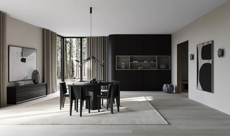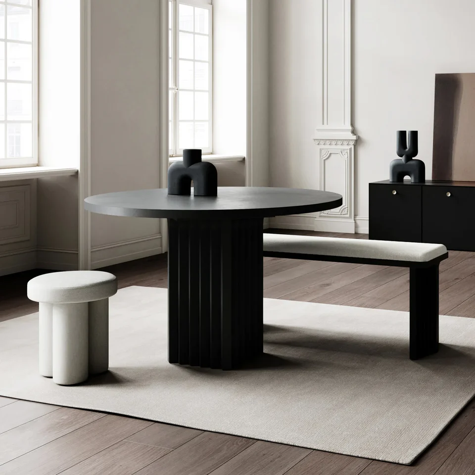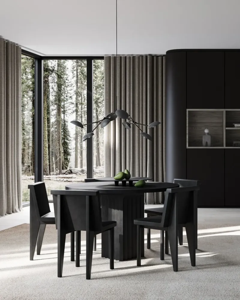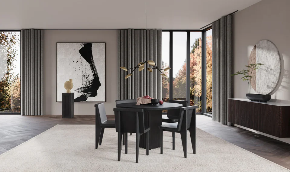 Arc餐桌與Brutus餐椅完美搭配,打造出粗獷主義和建築風格的外觀。