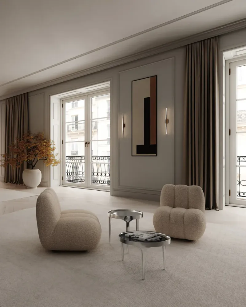 Phantom茶几有高矮兩種版本,鍍鉻光面鋁合金款擁有光滑如鏡的亮面,透過其亮眼的反光效果,呈現現代感的簡約美,增添一種時尚前衛的氣質,同時保留了Phantom系列所特有的精緻與微妙的設計語言。