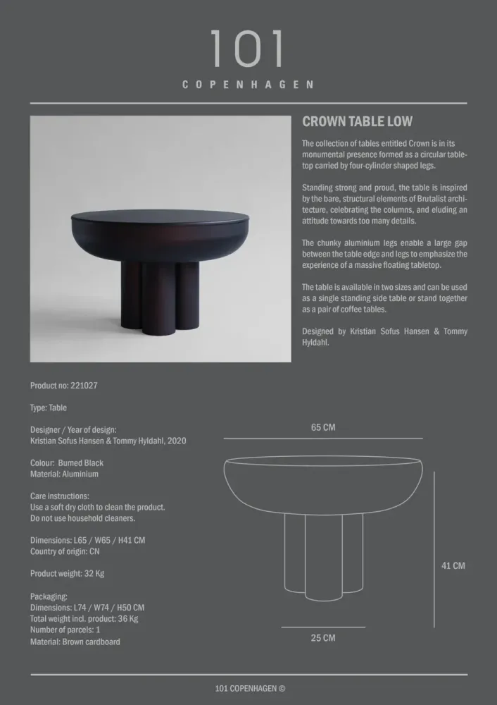 靈感來自粗獷主義建築,設計重點在結構性柱體,厚實的纖維混凝土桌腿讓桌面呈現懸浮感,減少繁複細節以強調設計本質。提供兩種尺寸,可單獨作為邊桌,也可搭配作為茶几使用。