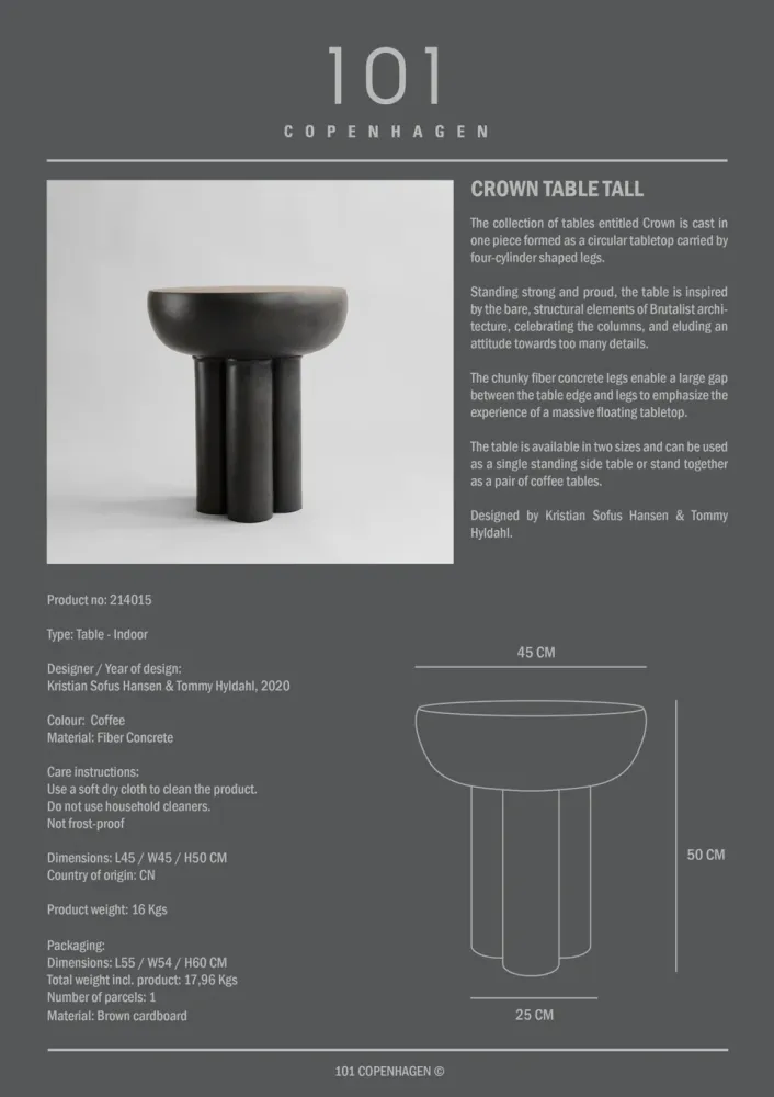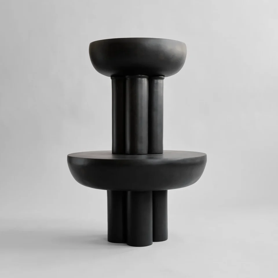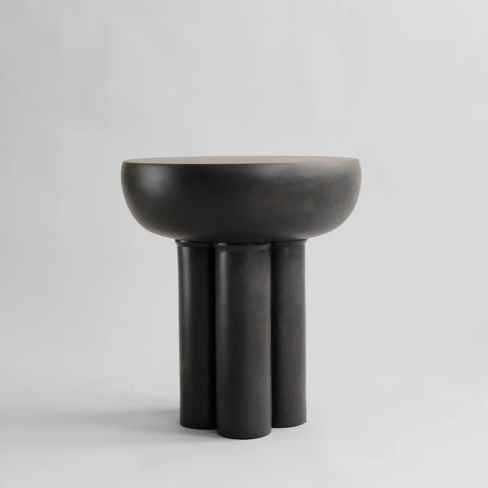 靈感來自粗獷主義建築,設計重點在結構性柱體,厚實的纖維混凝土桌腿讓桌面呈現懸浮感,減少繁複細節以強調設計本質。提供兩種尺寸,可單獨作為邊桌,也可搭配作為茶几使用,適合多樣室內環境。