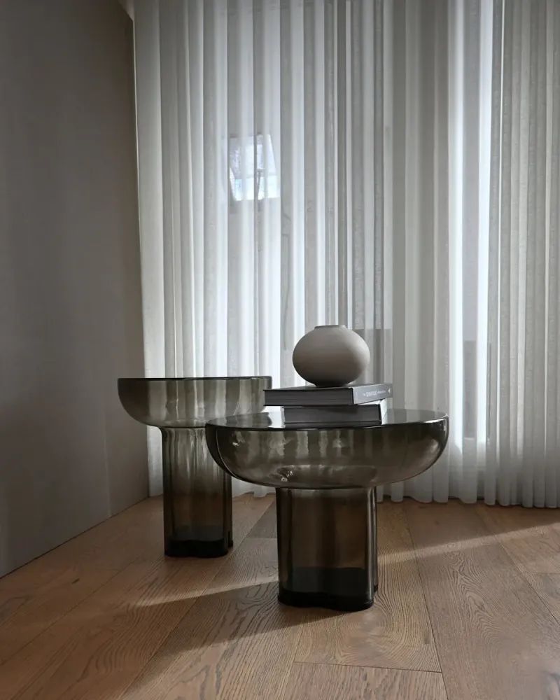 靈感來自野性粗獷的野獸派建築,設計重點在結構性柱體,凸顯柱狀設計之美並融合極簡美學,厚實的纖維混凝土桌腿讓桌面呈現懸浮感,減少繁複細節以強調設計本質。提供兩種尺寸,可單獨作為邊桌,也可搭配作為茶几使用,適合多樣室內環境。