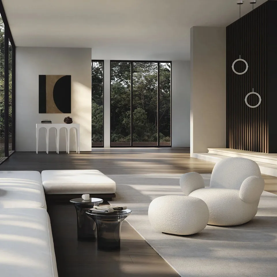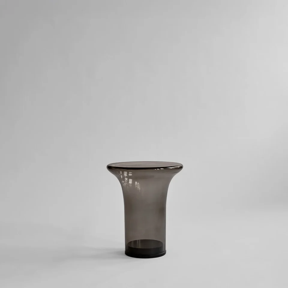 Trumpet 邊桌提供兩款獨特色調選擇。煙霧森林色(Smoked Forest) 透出深色透明質感,帶有微妙的綠色調;霧沙色(Smoked Desert) 則呈現獨特的暖灰色,略帶霧面通透效果,彷彿晨霧輕罩,增添神秘感。其百搭設計使 Trumpet 成為多種空間的理想亮點,適合多樣式內環境。
