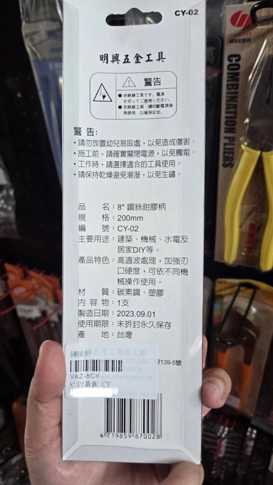 • 鋼絲鉗膠柄 8" 200mm 台製