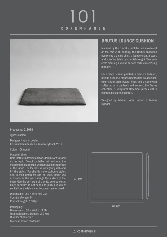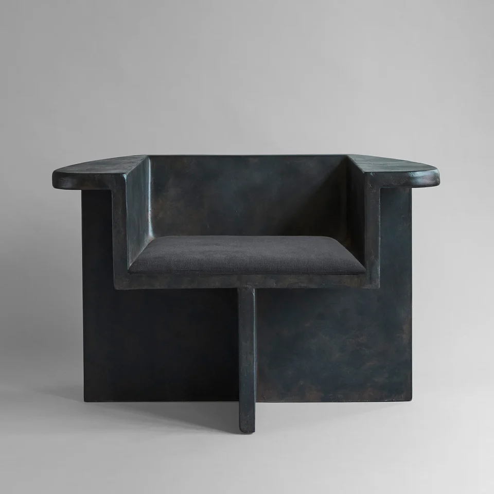 該系列借鑒了傳統的日本木製凳子設計,曲線座位和標誌性的十字支腳使其成為圓桌周圍的理想額外座位。每件產品都經手工繪製上色,以創造一個紋理、獨特的表面。Brutus系列強調了尖銳的建築線條與背部和扶手上稍柔軟的曲線之間的微妙平衡,展現了雕塑般的設計風格和引人入勝的座椅舒適感。