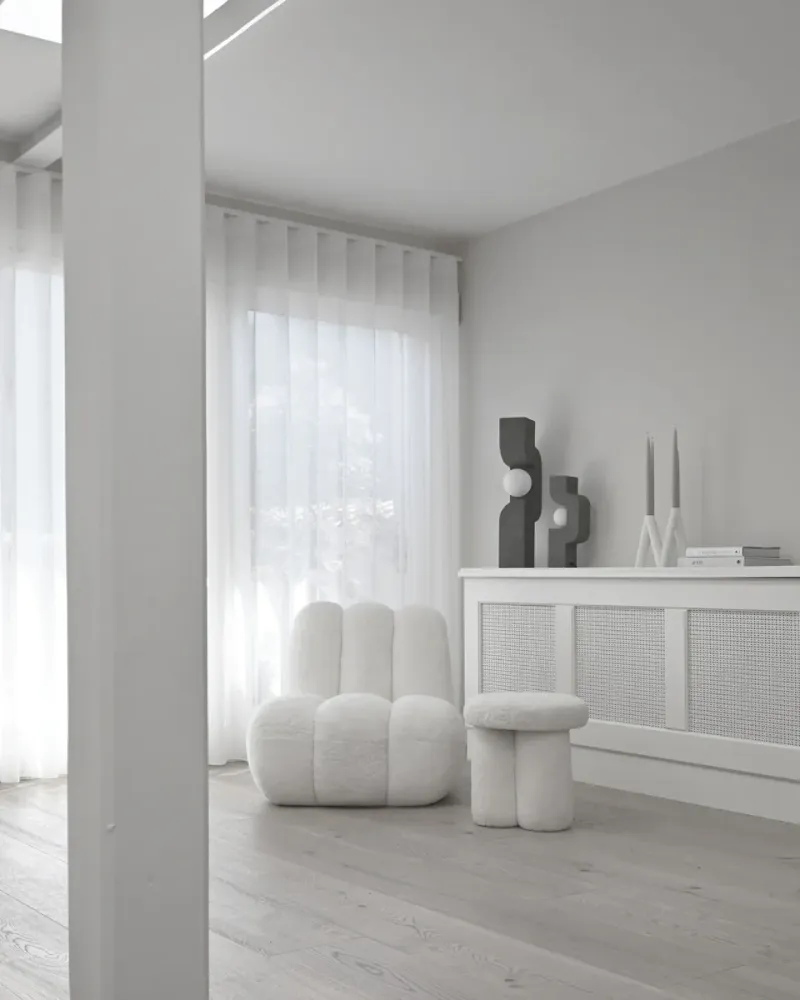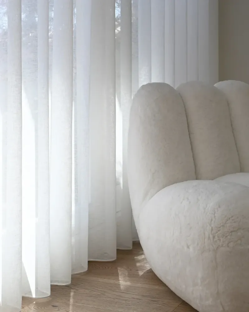 提供七種不同的面料選擇:天然質感的 Linen Chalk(亞麻);Bouclé面料帶來時尚且觸感豐富的三種顏色選項:米白、深褐和煙沙色;米白色的羊毛皮則呈現柔和且奢華的觸感;Sunproof Taupe適合耐污、防曬、防水環境;義大利磨面革 Nubuck 以精緻細膩的手工處理,擁有絲絨般的質感和高雅的感覺。