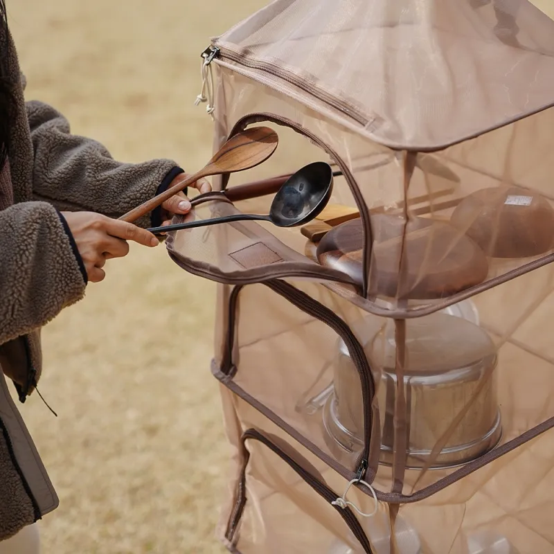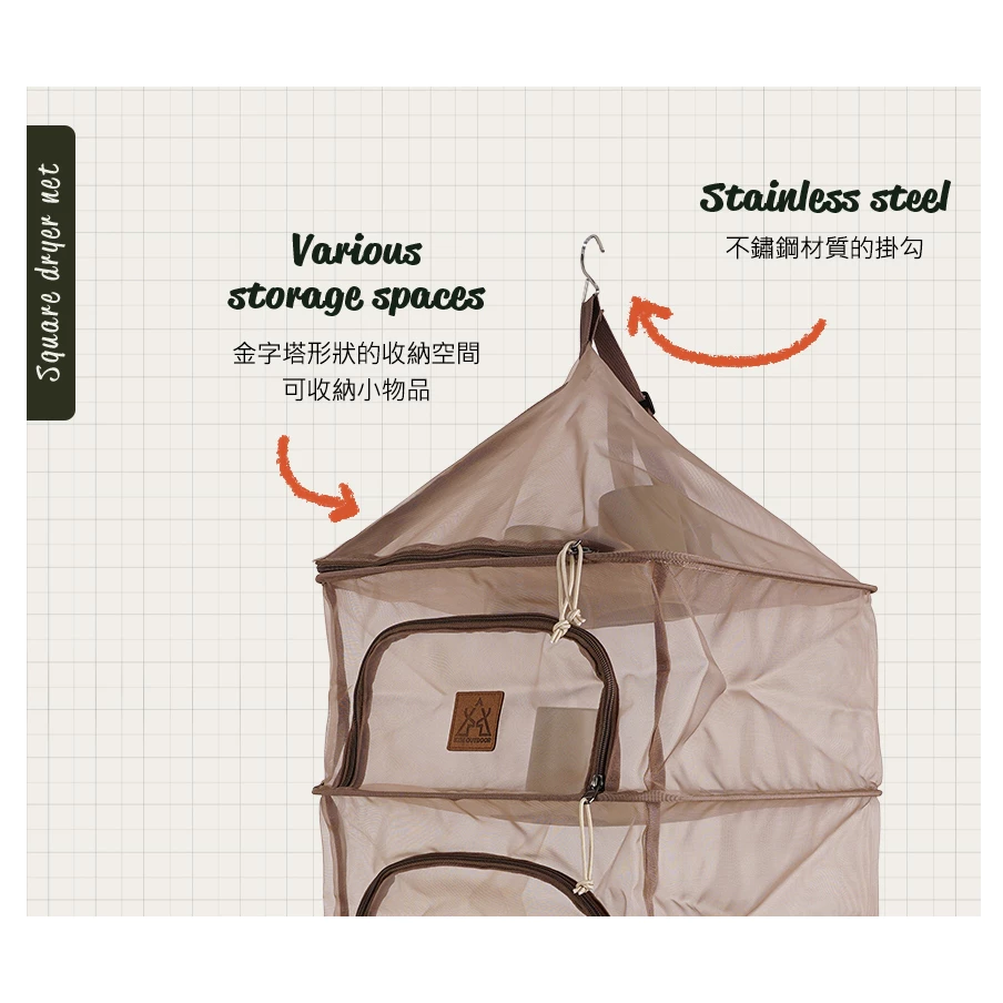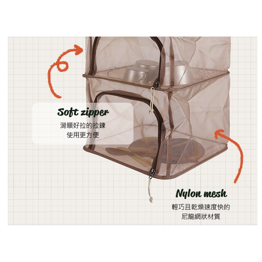 🔹4層式空間設計,有多樣的收納空間,可分層收納、晾曬各種露營用品