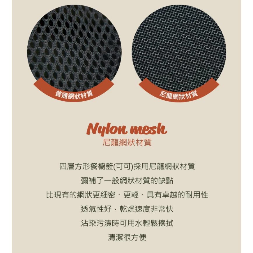 🔹輕巧且乾燥速度快的尼龍網狀材質