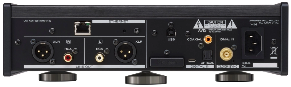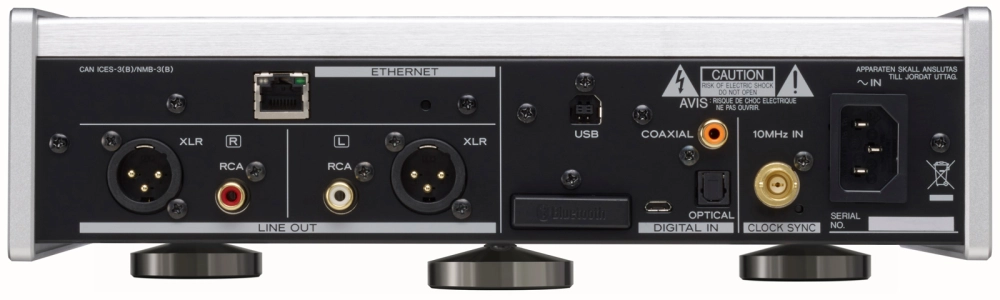 後部數位輸入介接包括三個(一個 USB、一個同軸和一個光纖),前部還有一個(同軸/光纖組合接口)。同軸和光纖數位輸入支援高解析度音訊來源,包括 PCM 192kHz/24bit 和透過 DoP 傳輸的 DSD 2.8MHz。前部數位輸入接口為同軸和光纖組合接口,可輕鬆連接具有數位輸出功能的數位音訊播放器 (DAP)。
