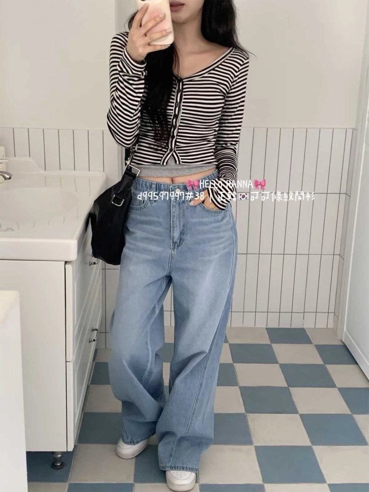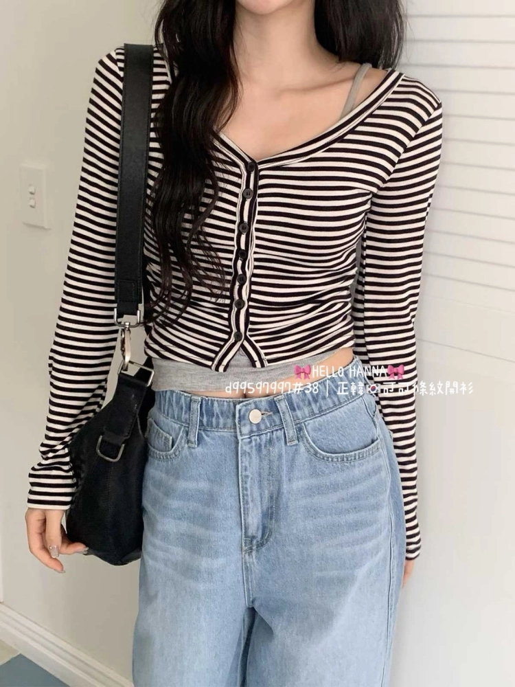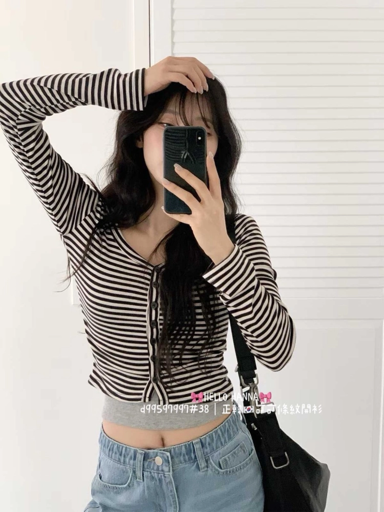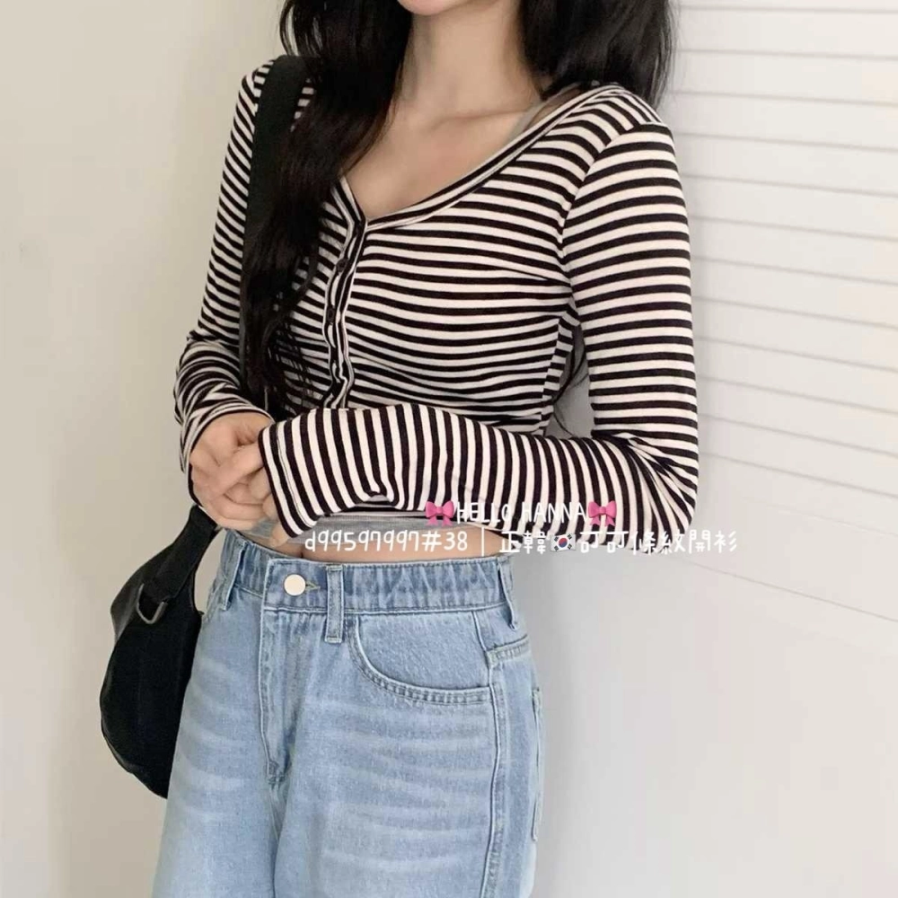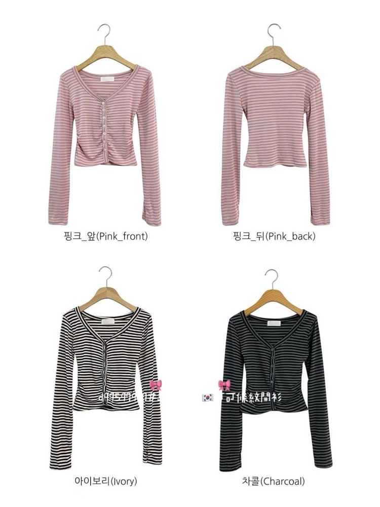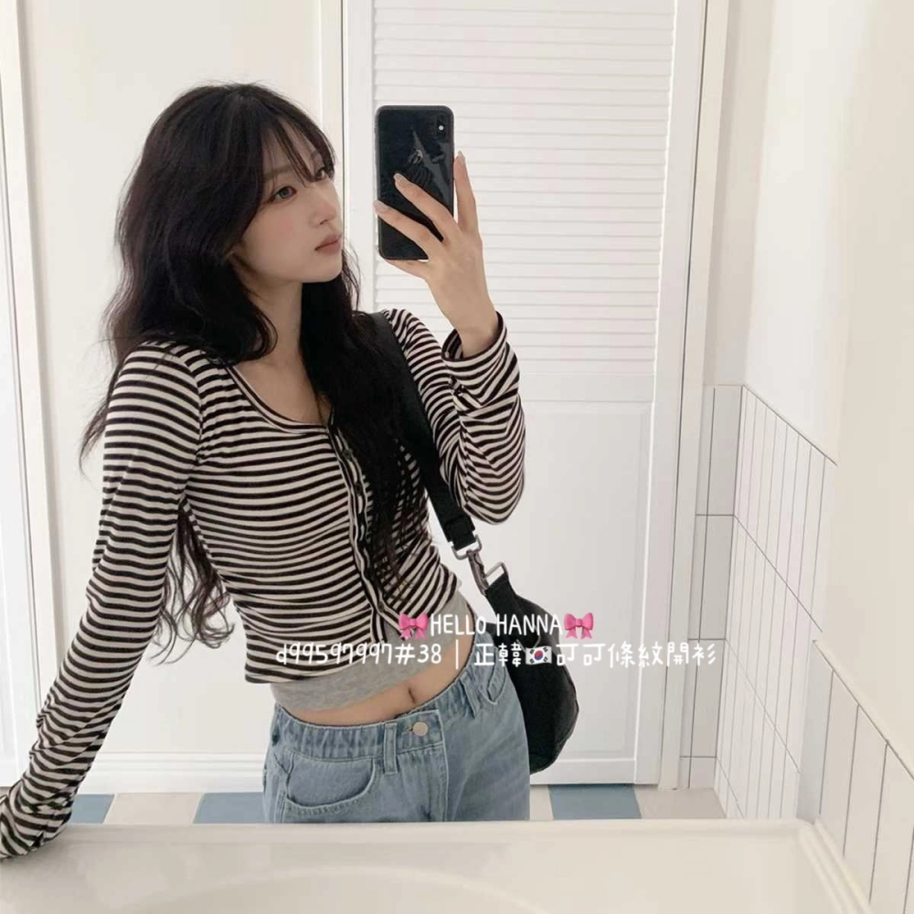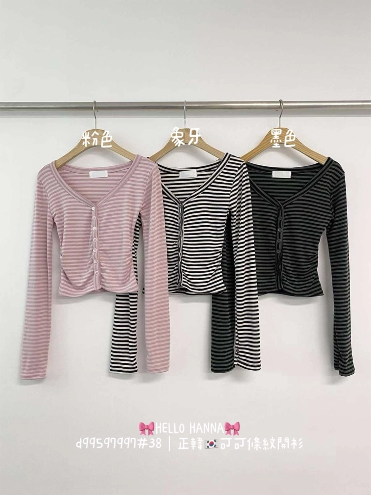 • 正韓可可條紋開衫