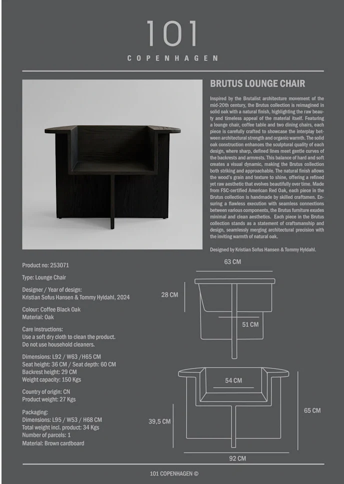 全系列選用 FSC 認證的美國紅橡木,由經驗豐富的工匠純手工製作,確保每個組件之間無縫銜接,完美呈現設計細節。Brutus 家具散發極簡、純淨的美感,每件作品都成為工藝與設計的宣言,將建築般的精準感與咖啡黑橡木的溫潤氣質完美融合。