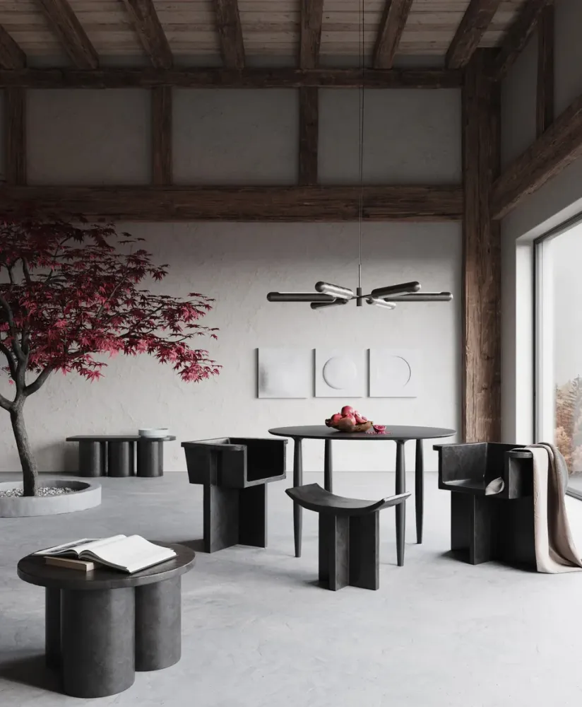 受20世紀中葉野蠻主義建築運動的啟發,Brutus系列包括餐椅、躺椅、凳子和用輕質纖維混凝土鑄造的茶几,創造了獨特的表面紋理,增加了流動性。