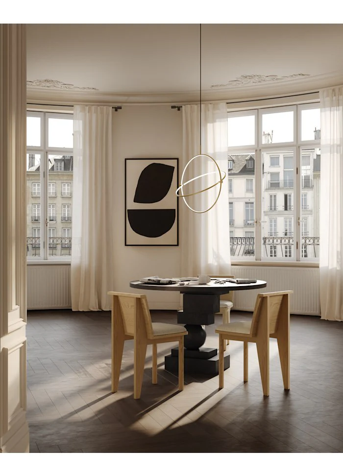 實心橡木的結構強化了設計的雕塑感,俐落的線條與椅背、扶手的柔和曲線相互映襯,形成剛柔並濟的視覺張力,使 Brutus 系列兼具大膽造型與親和氛圍。木材的天然飾面保留了原始紋理與質感,帶來精緻而純粹的美感並隨時間推移展現更深層的韻味。