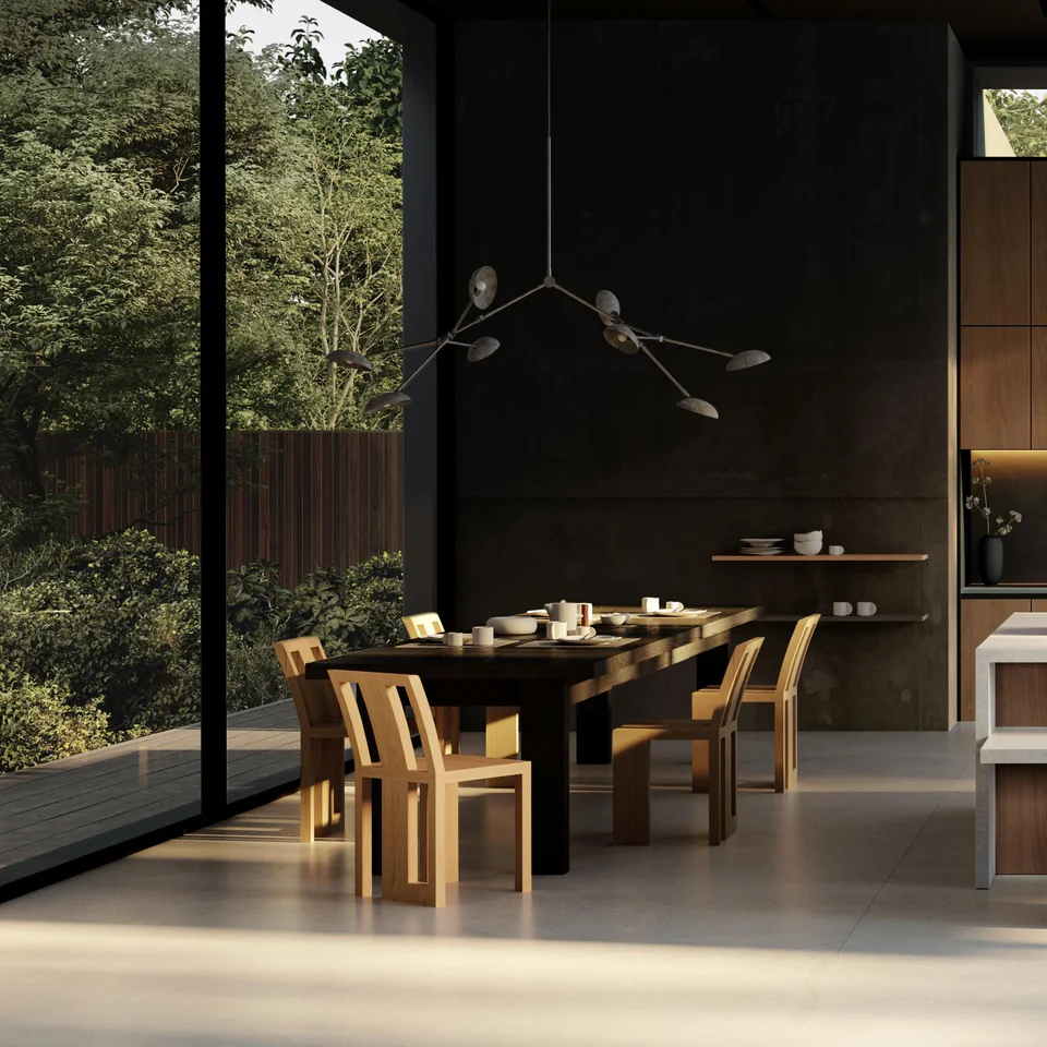 「Atsu」源自日語,意味著「沉重」或「堅固」,完美體現了椅子視覺上的重量感與平衡感,營造出一種厚重與輕盈的和諧交融。以傳統中國椅子為靈感,選用 FSC 認證的美國紅橡木,呈現出一個引人注目的極簡設計。每把 Atsu 椅子均由技藝精湛的工匠手工製作,確保各組件之間的無縫連接,散發出極簡且俐落的美學。Atsu 椅子的非對稱結構本身就是一件雕塑作品,透過大塊橡木板材組成前腳與中心椅背,這一設計挑戰了傳統的視角,使觀者需要以動態的方式來觀察和互動。雖然椅子呈現厚重、沉穩的視覺效果,但依然保持著精緻且簡約的美學。