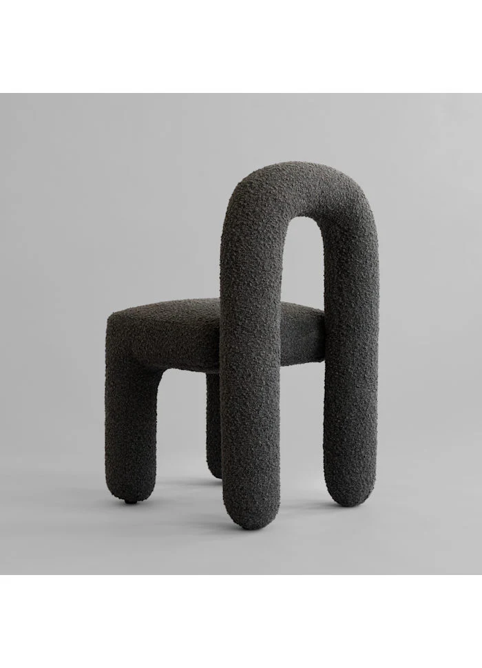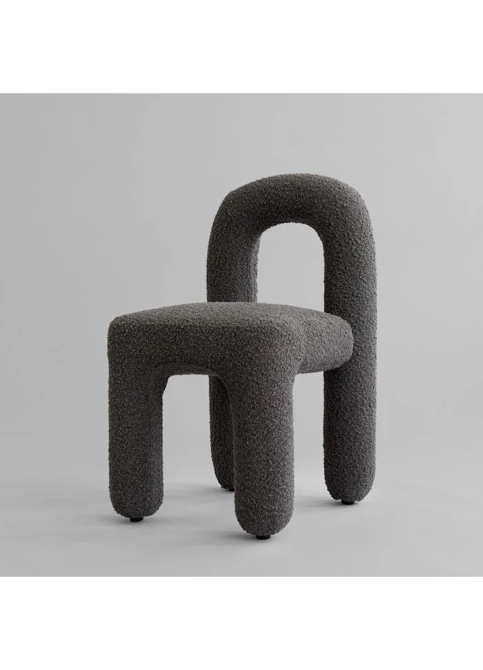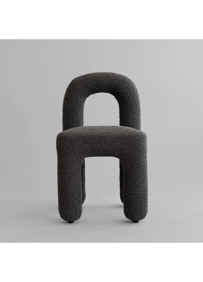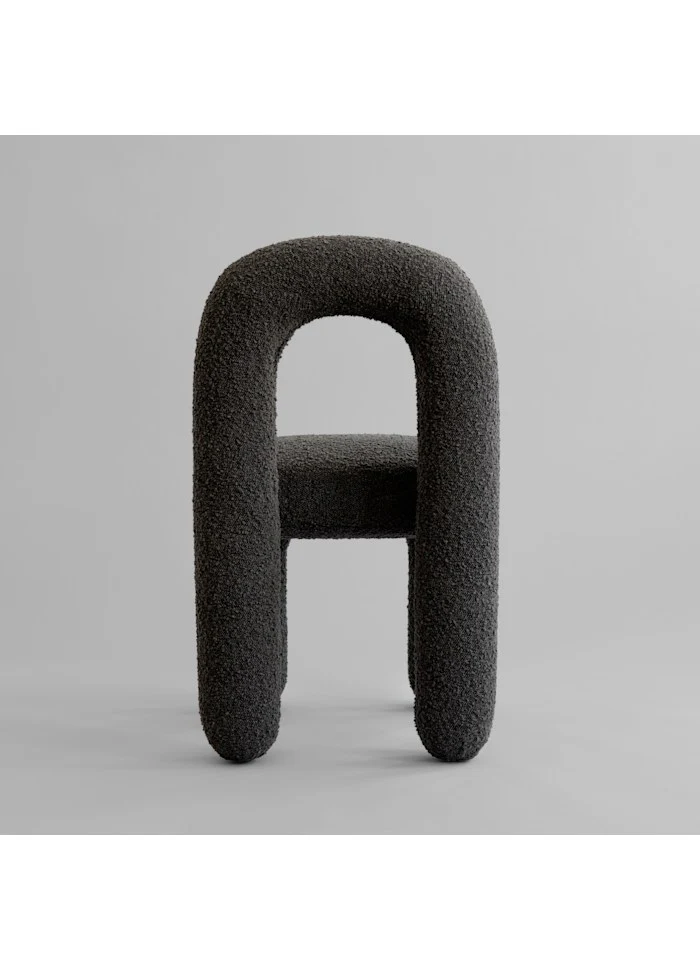 椅子表面採用與同系列休閒椅相同的 暖調深灰褐色(Deep Taupe)圈圈絨布料(bouclé),提供溫馨舒適的坐感,能完美融入各種餐廳空間。