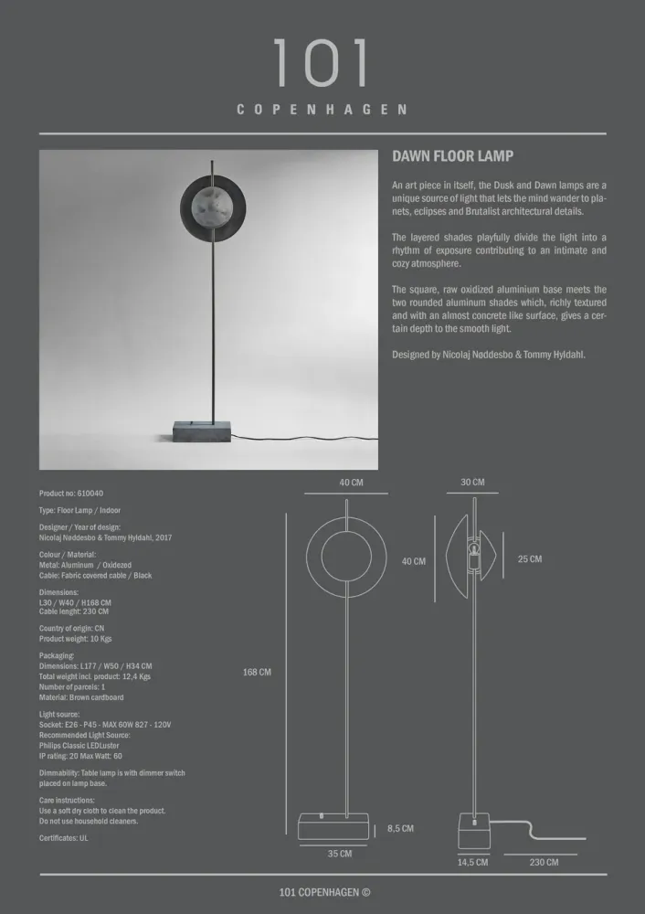 本身即是一件藝術品,Dusk 和 Dawn 燈具是一種獨特的光源,讓人聯想到行星、日蝕以及粗獷主義建築的細節。層疊的燈罩巧妙地分割光線,營造出光影交錯的韻律,帶來私密且溫馨的氛圍。經過氧化處理的鋁製方形底座與兩個圓形鋁製燈罩相遇,燈罩上豐富的紋理質感,宛如混凝土般的質地,為柔和的燈光增添一份深度與層次感。