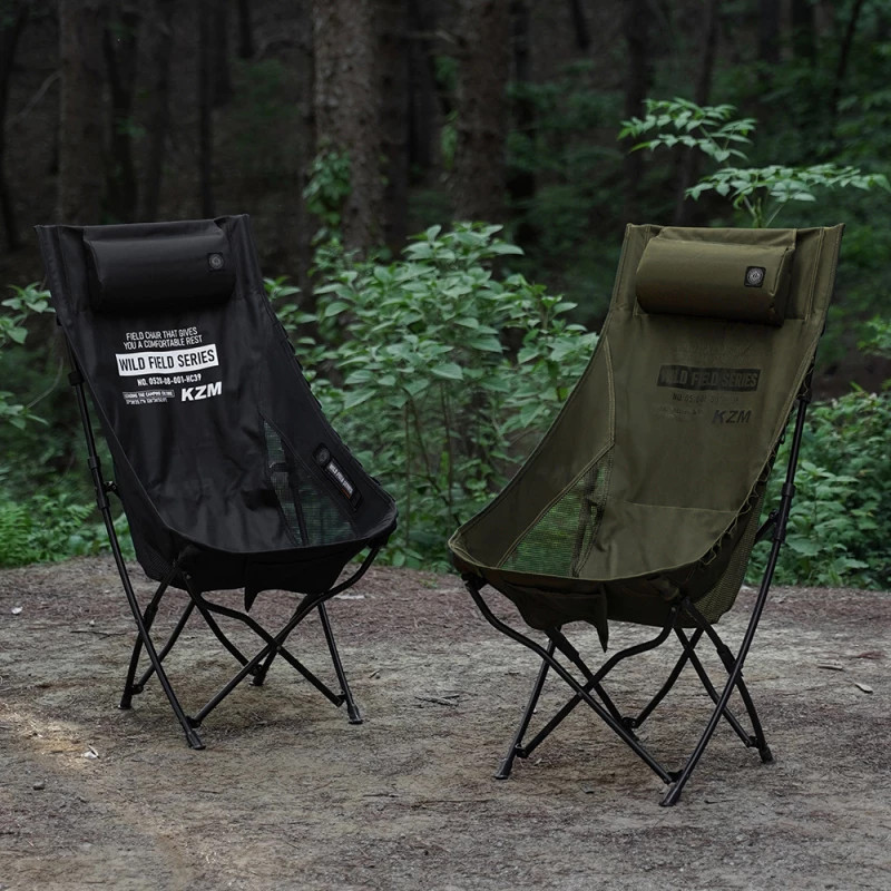 【綠色工場】KAZMI KZM 工業風高背懶人折疊椅 黑色/軍綠 月亮椅 折疊椅 露營椅 附收納袋