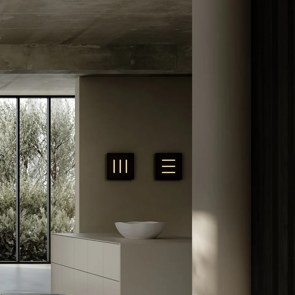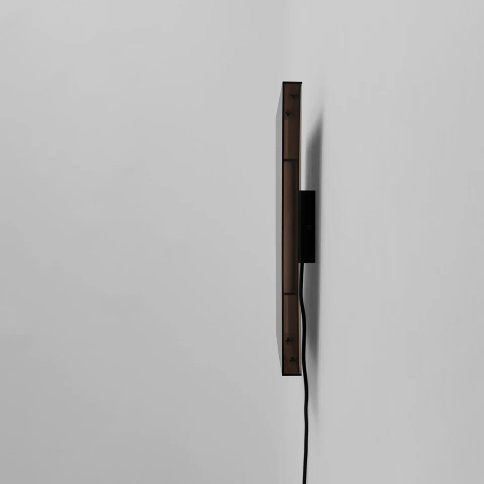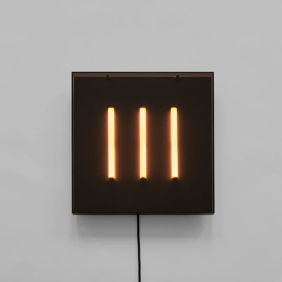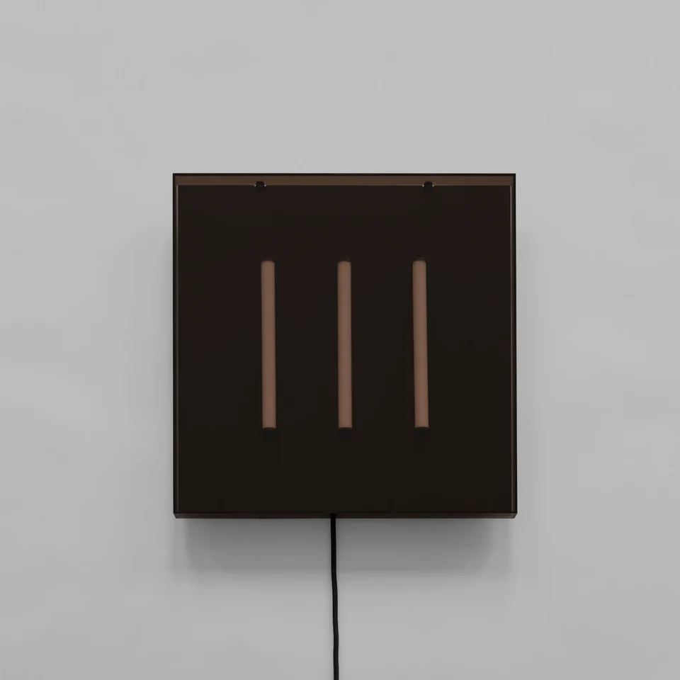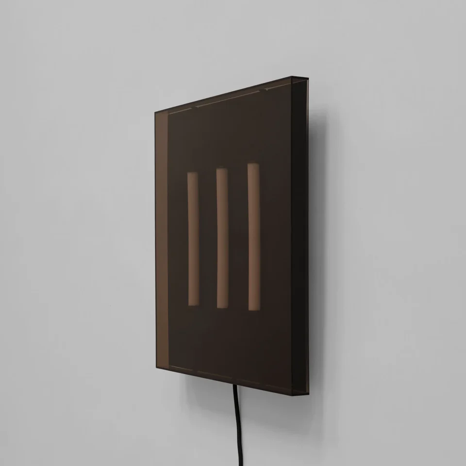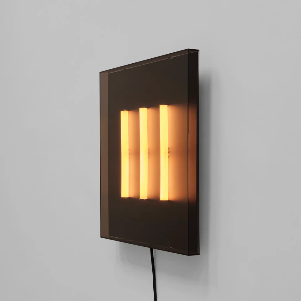 靈感源自充滿活力的 80 年代霓虹美學,將壁面藝術與燈光巧妙結合。燈罩採用方形壓克力材質,帶有半透明的暖灰色調,內部三條發光管構成獨特的幾何圖案,在燈罩後方展現富有層次的光影效果。採用內建LED燈,具有2.5萬小時的使用壽命,色溫為2400K的暖光,與傳統霓虹燈冷調的光線不同,營造溫馨舒適的氛圍。